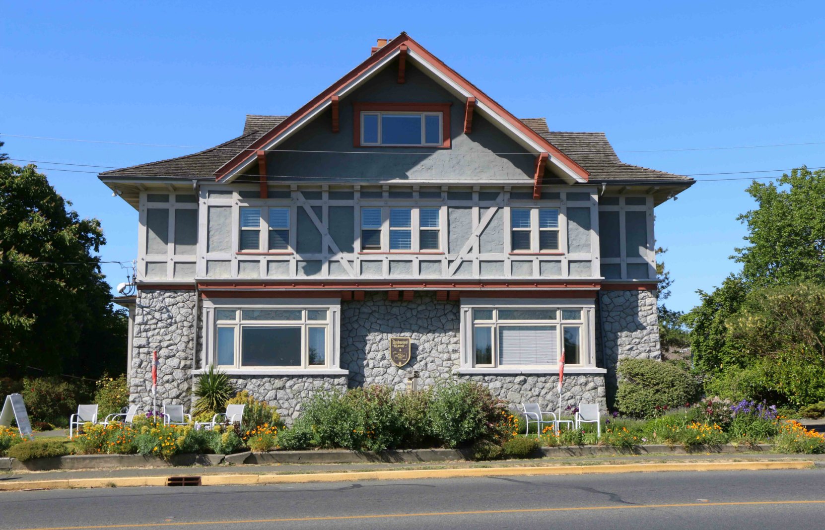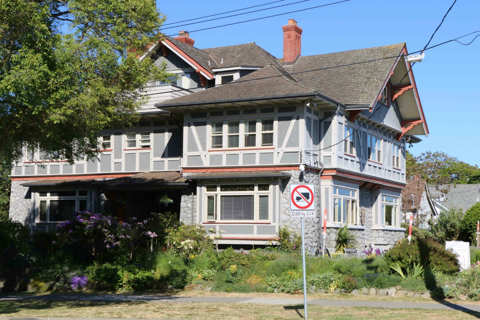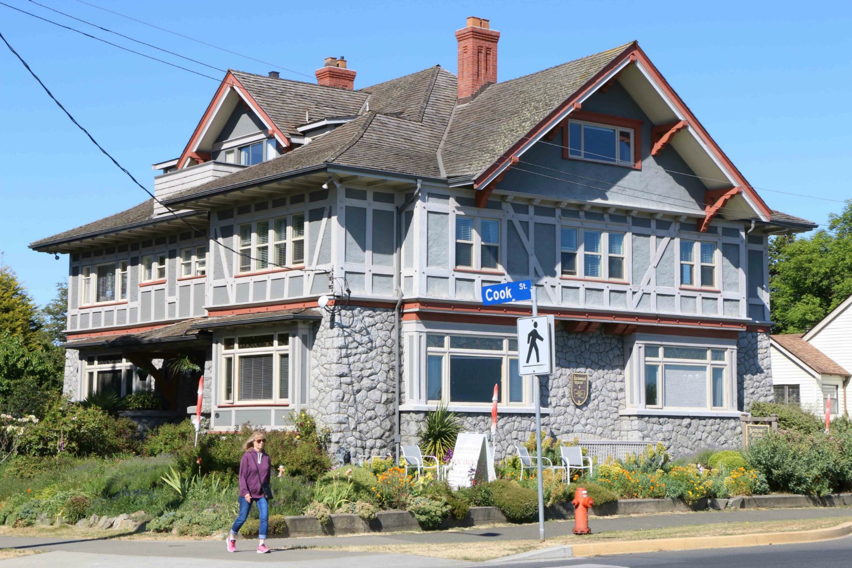 1 Cook Street, at the corner of Cook Street and Dallas Road. Built in 1912 for Arthur Lineham, it is now Dashwood Manor B&B.