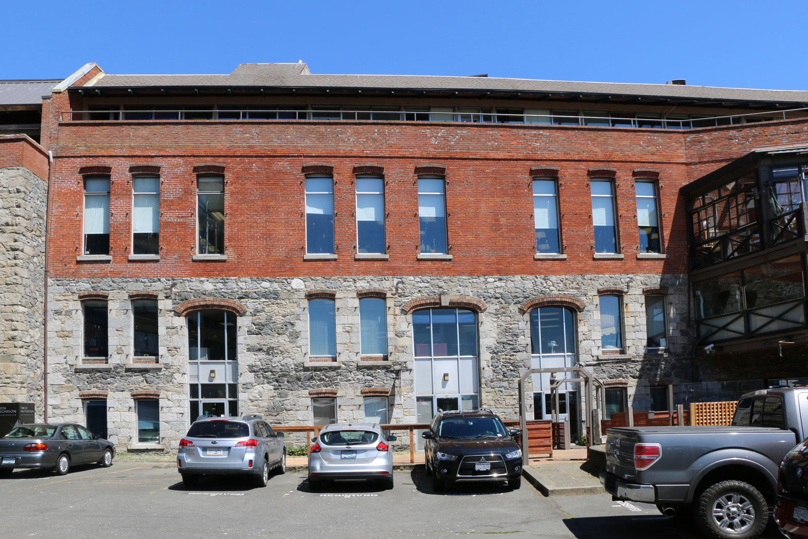 The rear of the Finlayson Building was designed for access  to the Inner Harbour. It takes advantage of the slope to create three storeys overlooking the Inner Harbour while there is only a single level evident on Wharf Street.