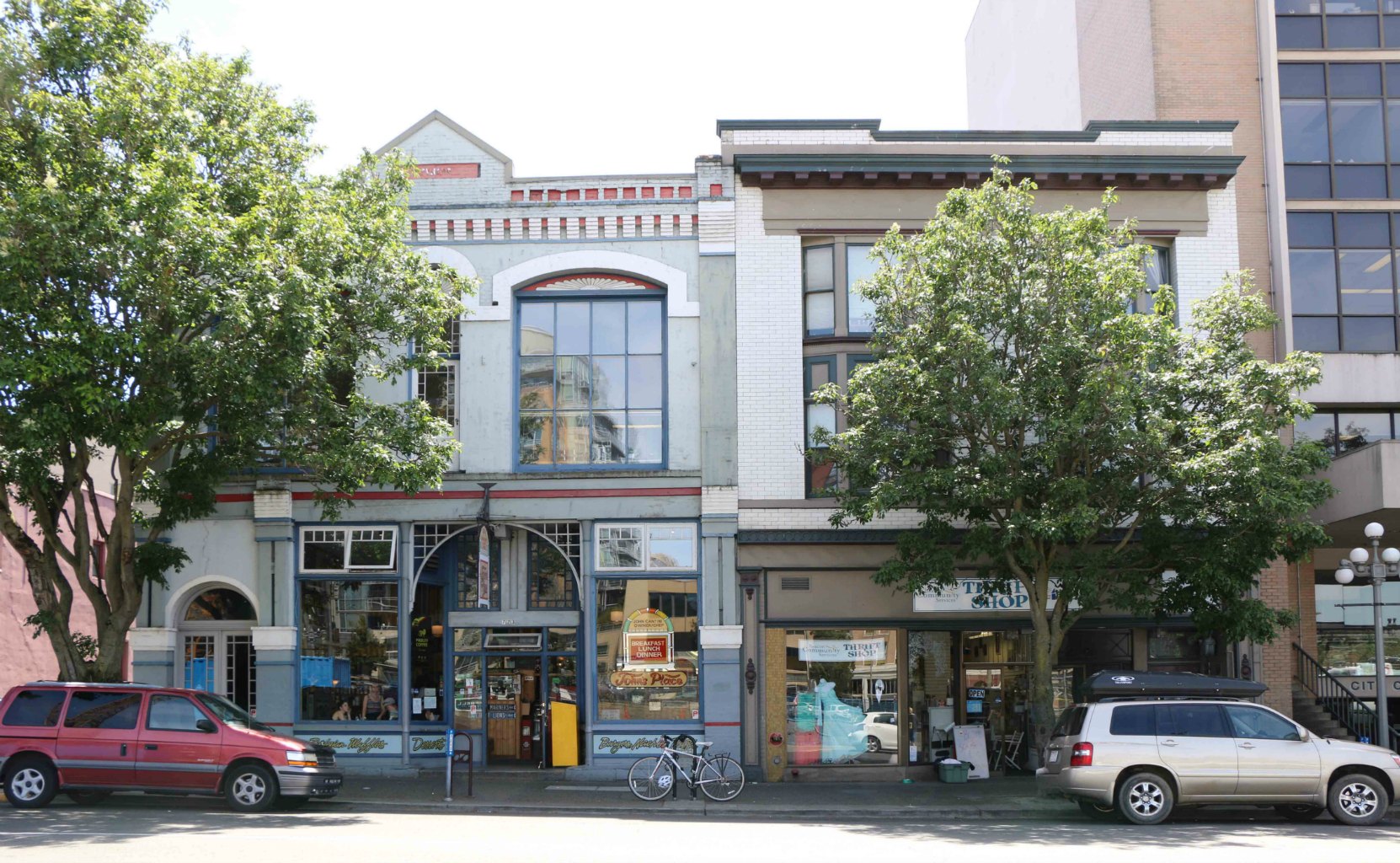 1601-1613 Store Street, now Swan’s Hotel. at Pandora Avenue. Originally built in 1913 as a warehouse for Scott & Peden, a feed and grain company