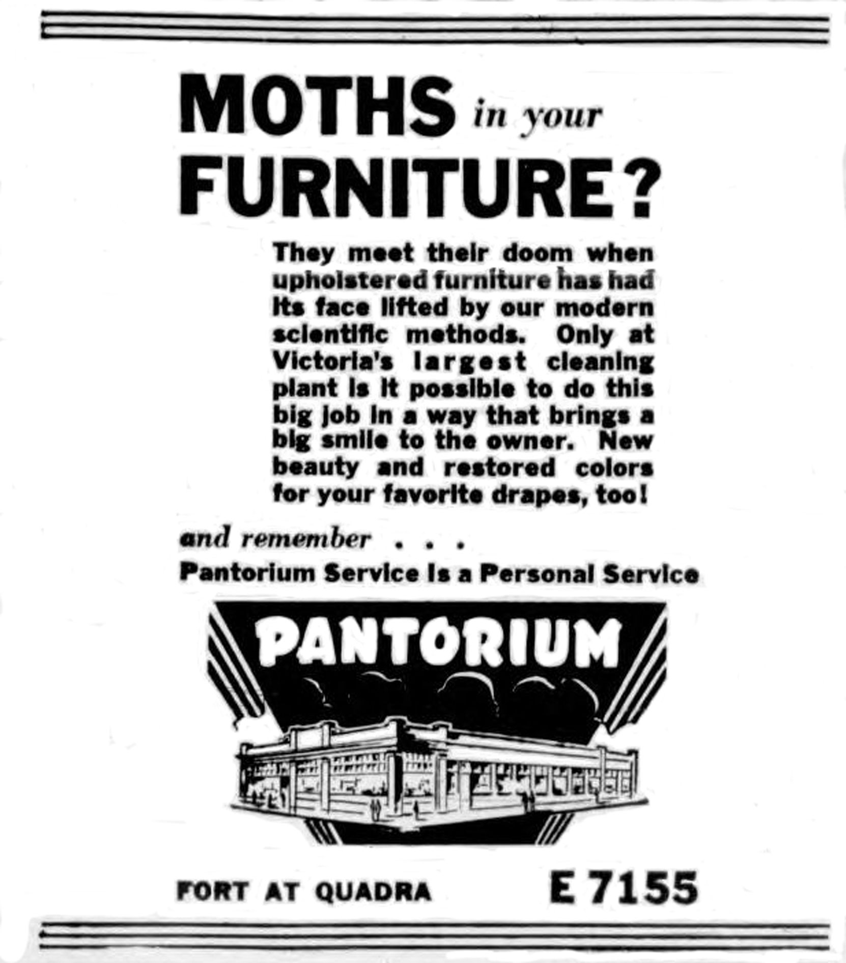 As part of our series on Historic Victoria Advertisements, Buildings, here is a 1946 advertisement for The Pantorium, located at 905 Fort Street.