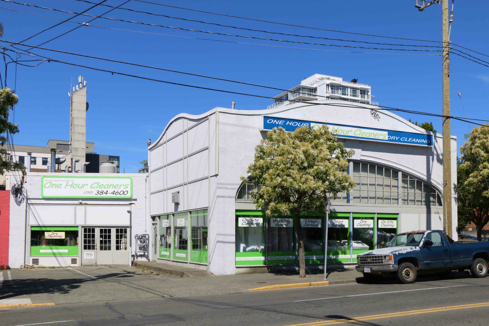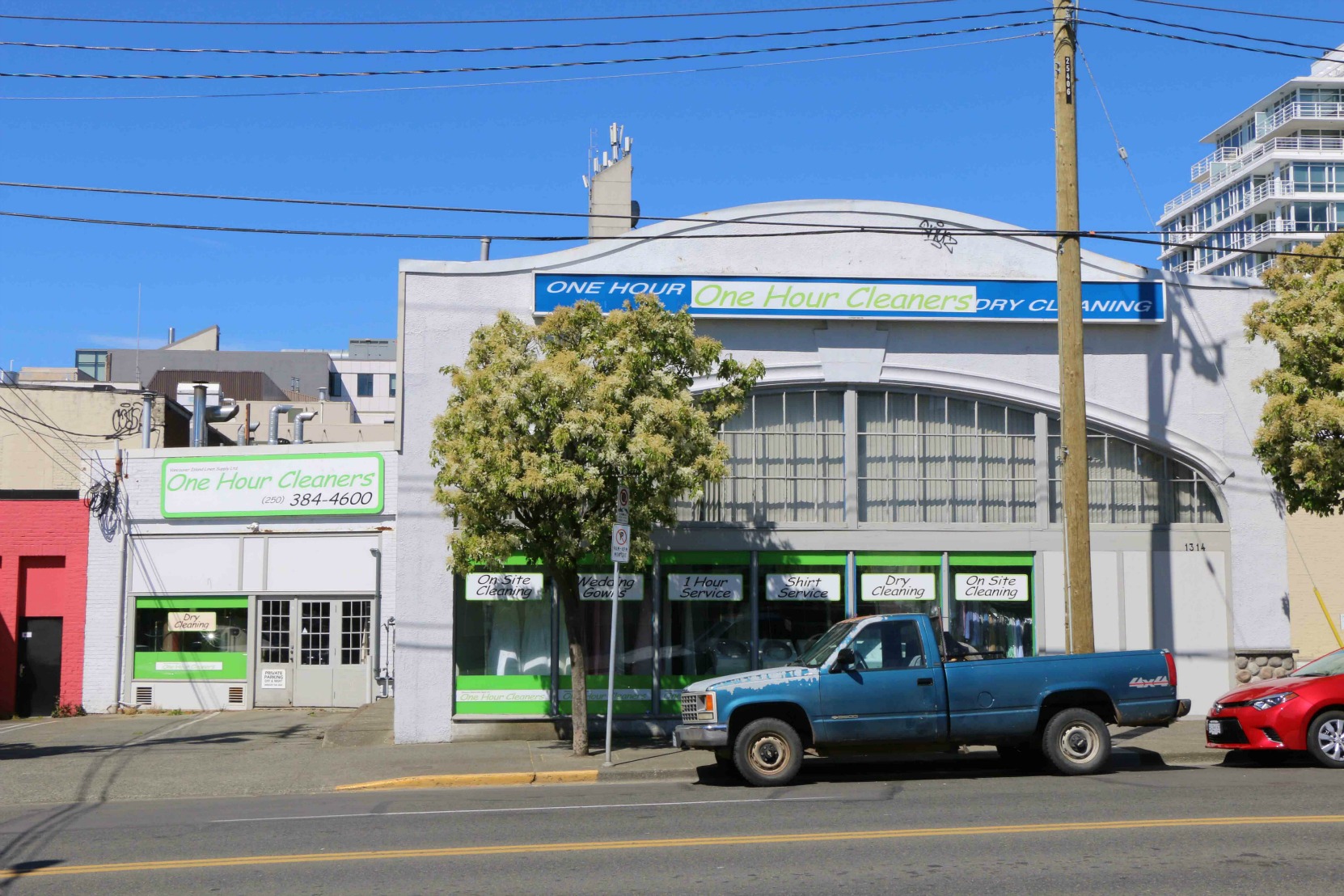 1314 Quadra Street was built in 1929 as a garage. It is now used a dry cleaners.